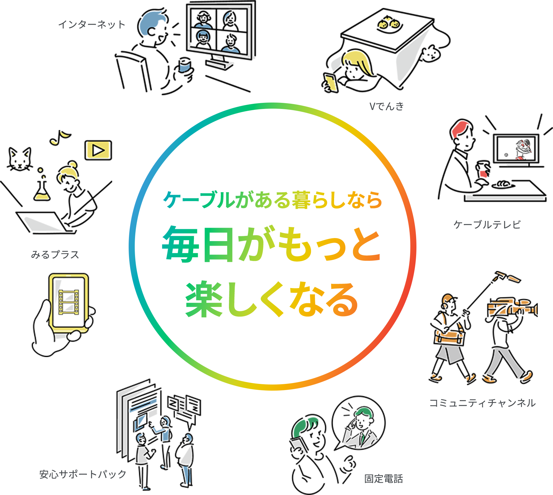 インターネット、VOD、ケーブルテレビ、固定電話など、生活を便利にするICVのサービス情報