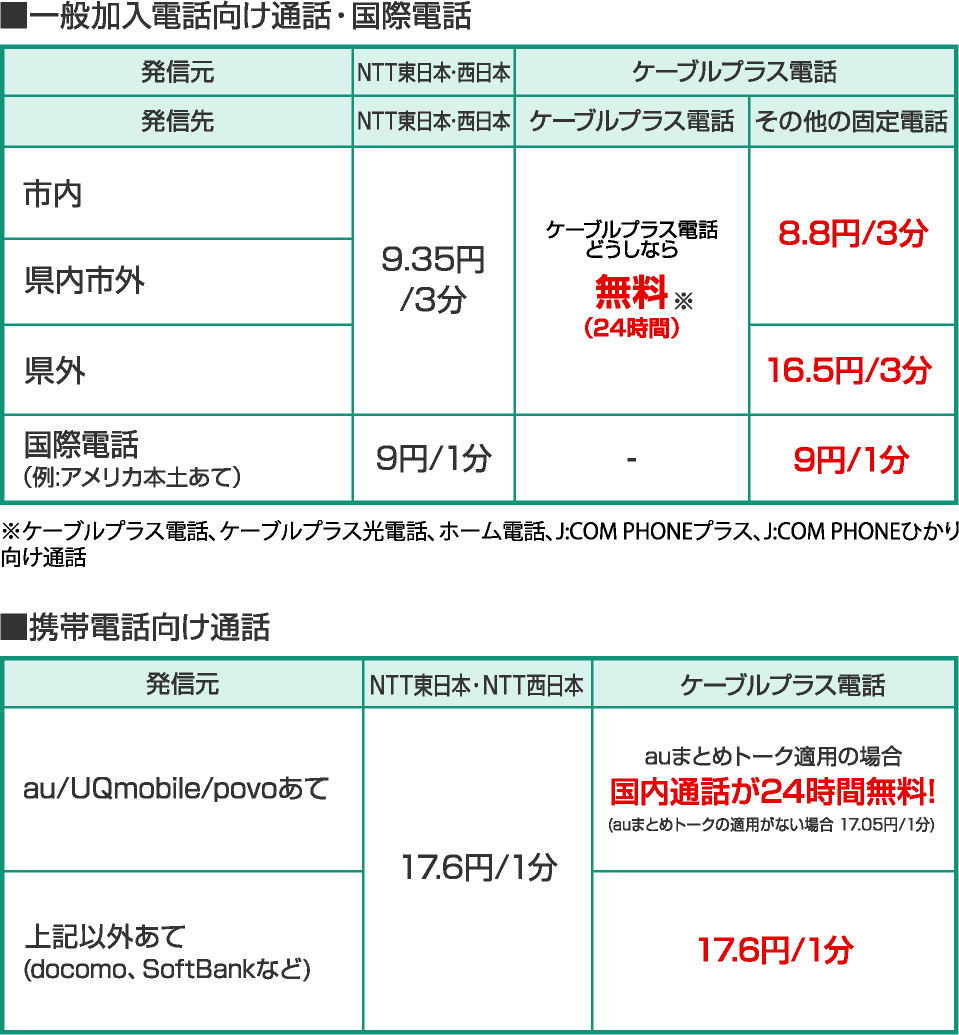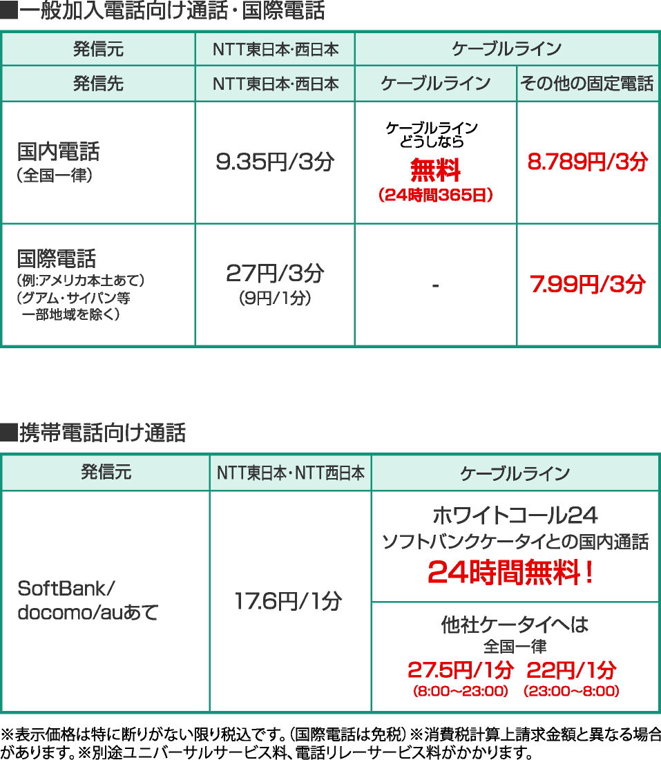 国内通話も国際電話もおトクな料金でかけられます。※同じ電話サービス間は通話無料